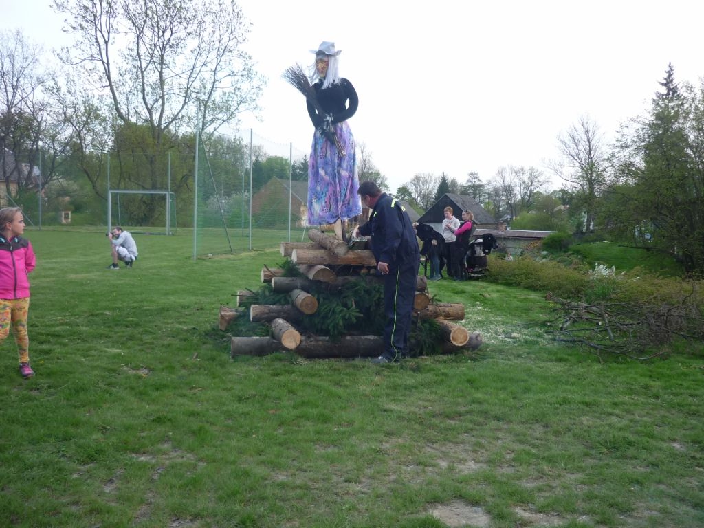 Akce se vydařila ke spokojenosti všech přítomných, čarodějnice shořela a májka stojí.