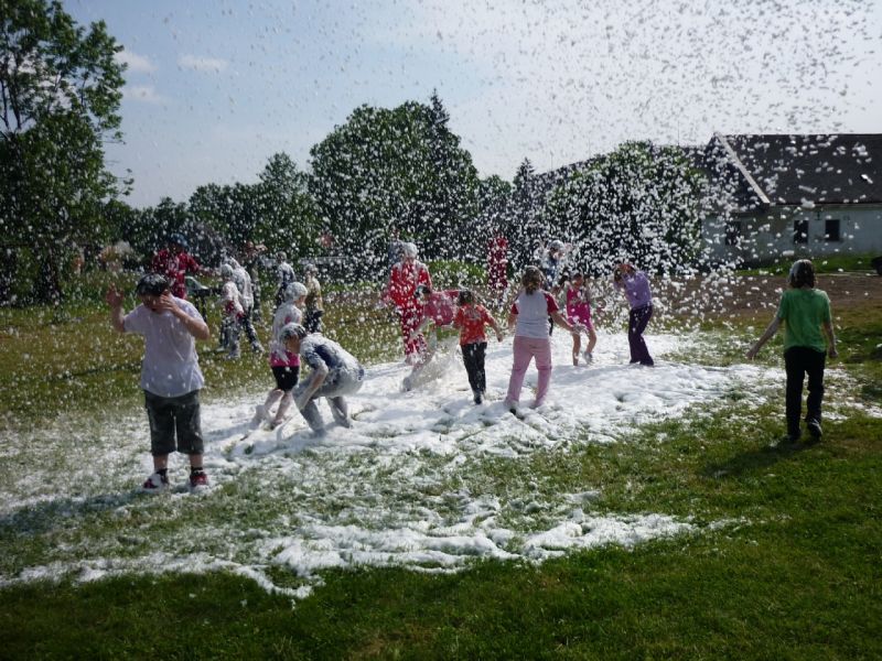 Místní hasiči nastříkali pro děti pěnu